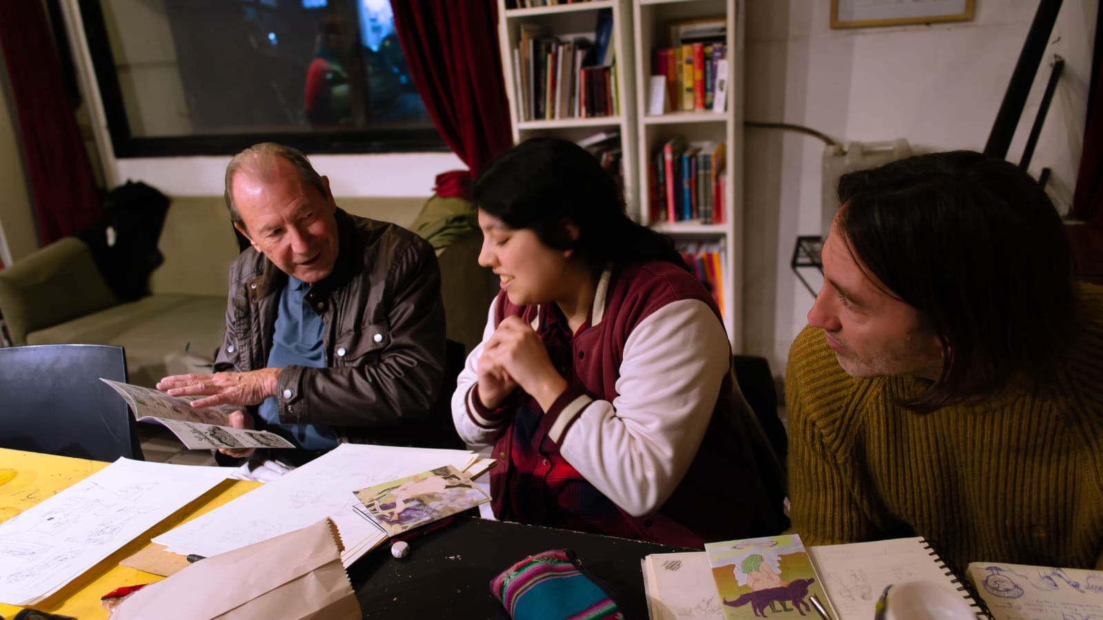 En otro orden de cosas, en agosto David Lloyd (el dibujante de V de Vendetta) estuvo en Argentina. Vino a la CBB, hizo firma de ejemplares y revisión de portfolios en Moebius. Fue una experiencia rarísima, mostrar mi trabajo a un historietista tan importante. Su devolución me sorprendió (pensé que me iba a decir "ponete a practicar perspectiva y manos"), pero lo que me dijo es que estoy matando la energía de mis bocetos con los grises y negros. Entonces, tengo dos páginas que pensaba terminadas; más no. Ahora quiero volver a revisar y ver si puedo conservar la energía.
